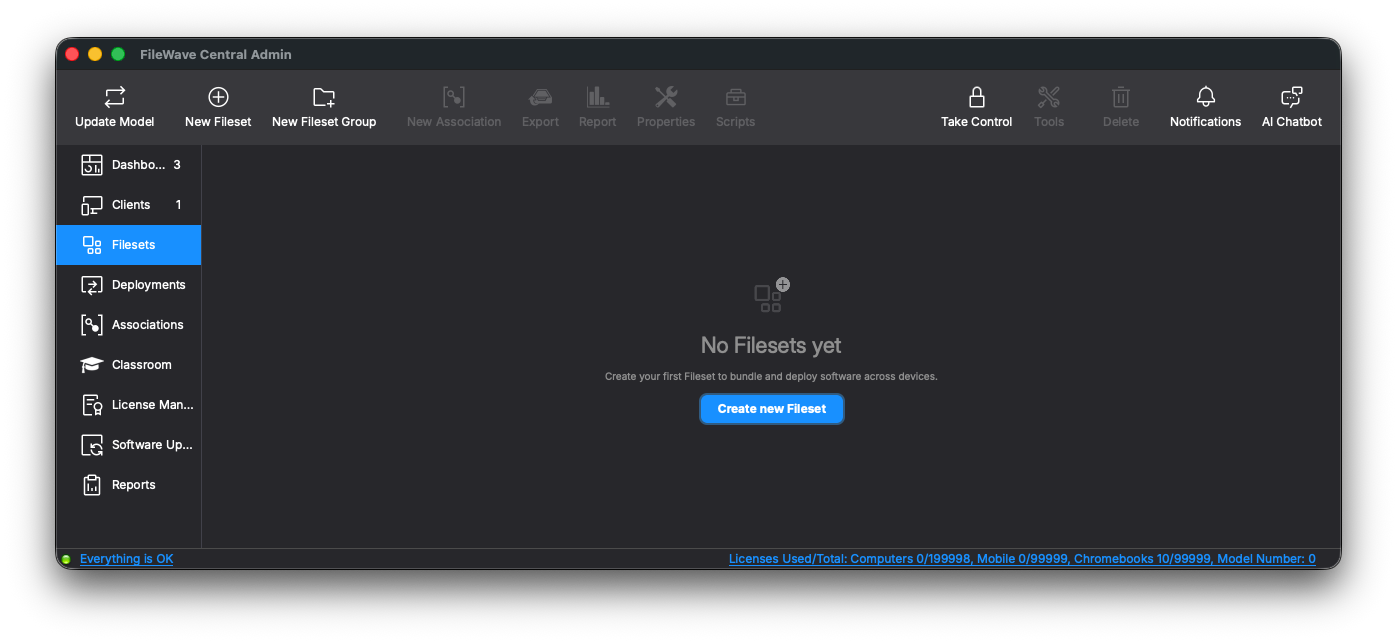 Remember that to upgrade macOS FileWave clients you should use the Upgrade Fileset. Never deploy the macOS Client installer from https://custom.filewave.com to an existing device. It is intended for new installs.