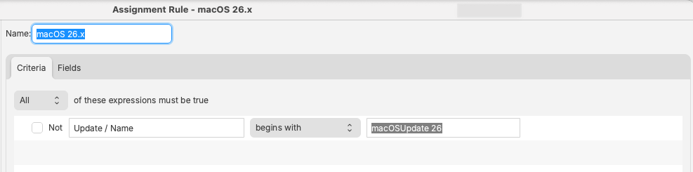 | 3: Rule for macOS Update | Again, the name explains the rule, with all macOS updates being added to a Fileset Group named 'macOS'. | |