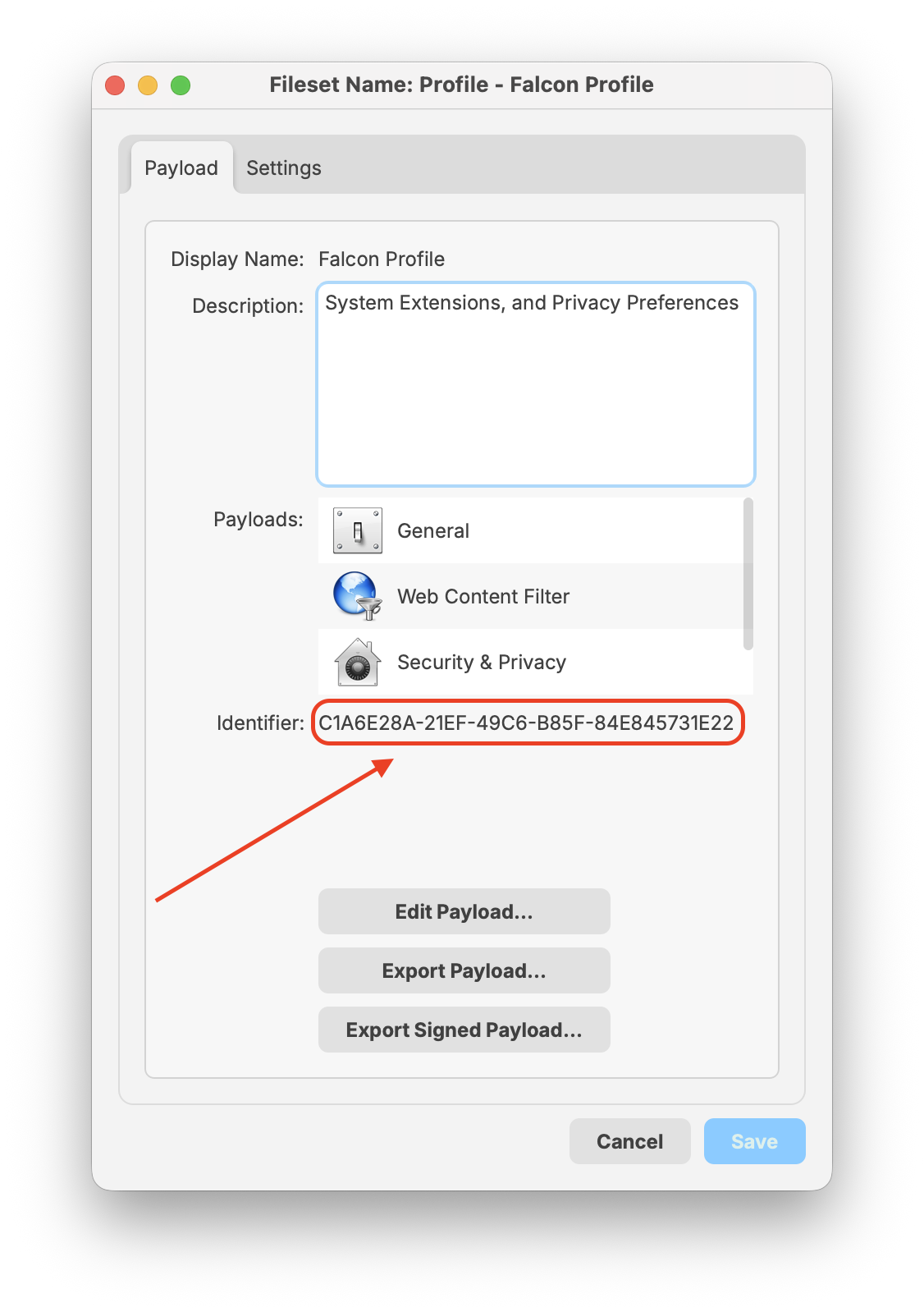 The payload identifiers are preconfigured in the provided template fileset. The steps below explain how to add your own Payload Bundle Identifier if needed.