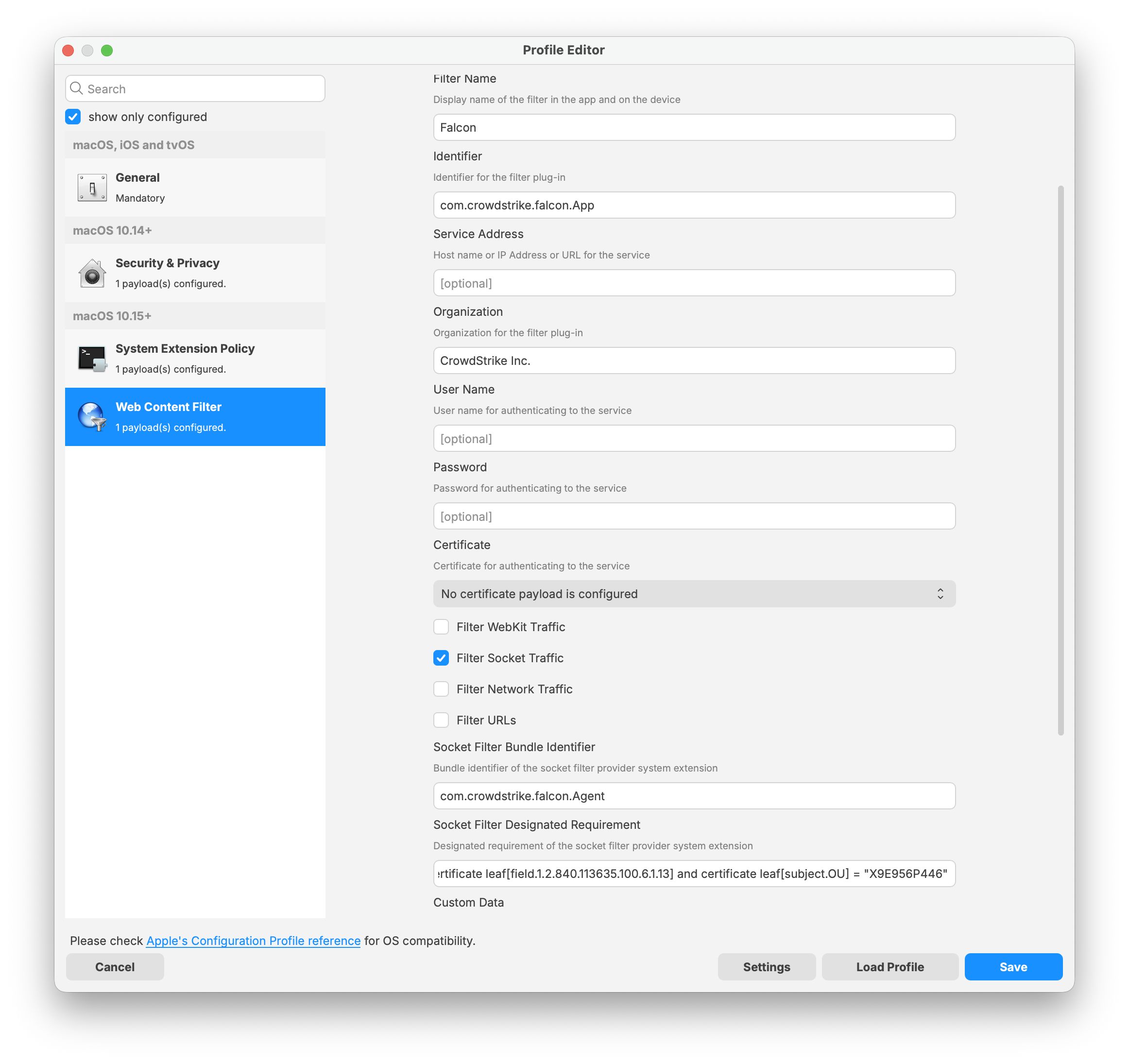 Falcon Configuration Profile for Sequoia and later: