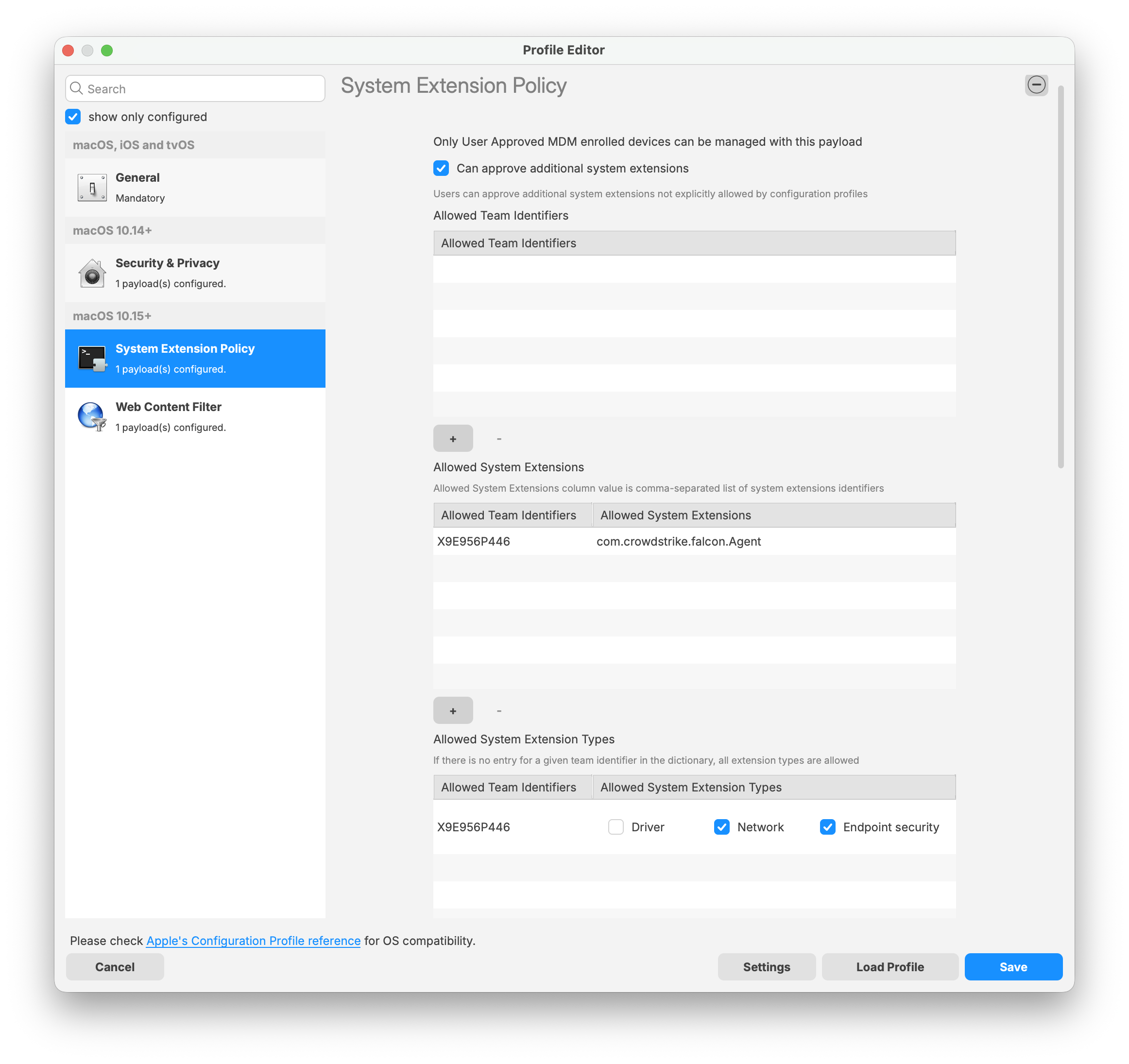 System Extension Policy Payload: