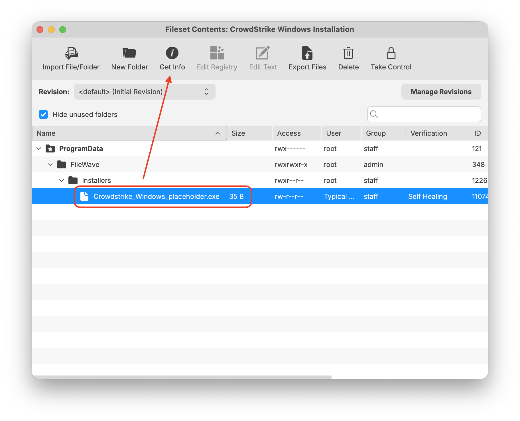 The Fileset included has a placeholder for your EXE installer. Be sure to replace with your EXE installer provided by CrowdStrike.