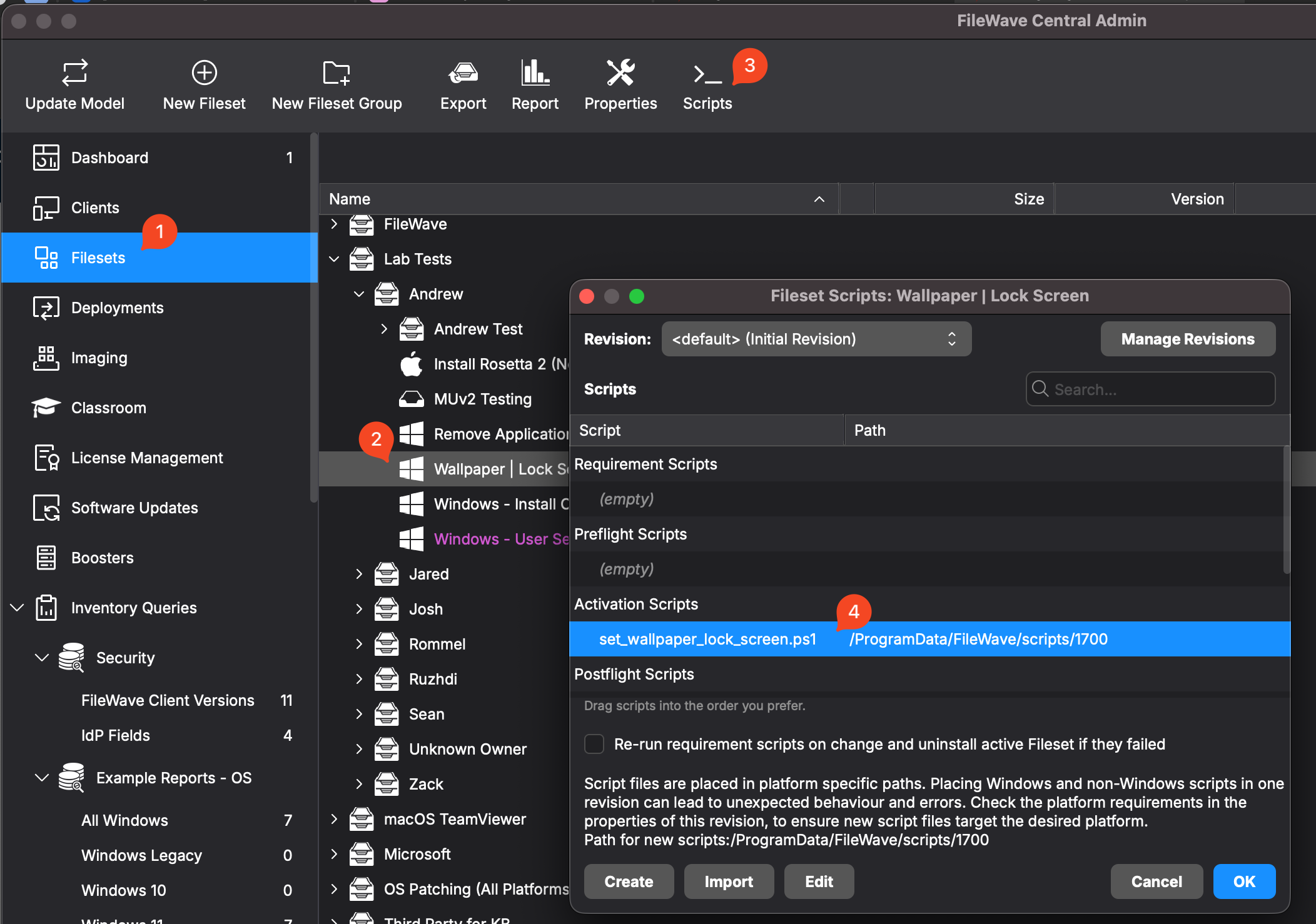 These scripts are designed for deployment through FileWave as a Custom Fileset and run under the SYSTEM account to ensure MDM Bridge access.